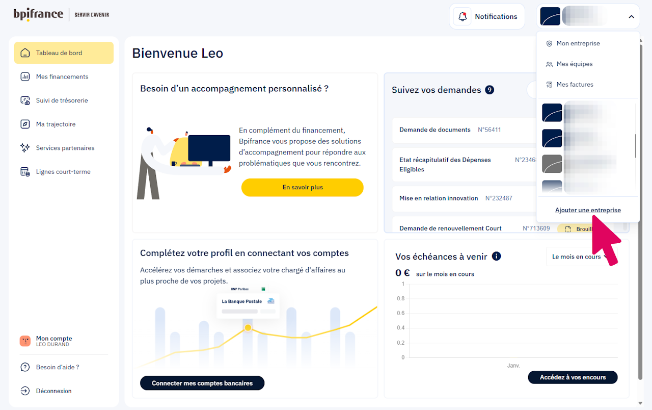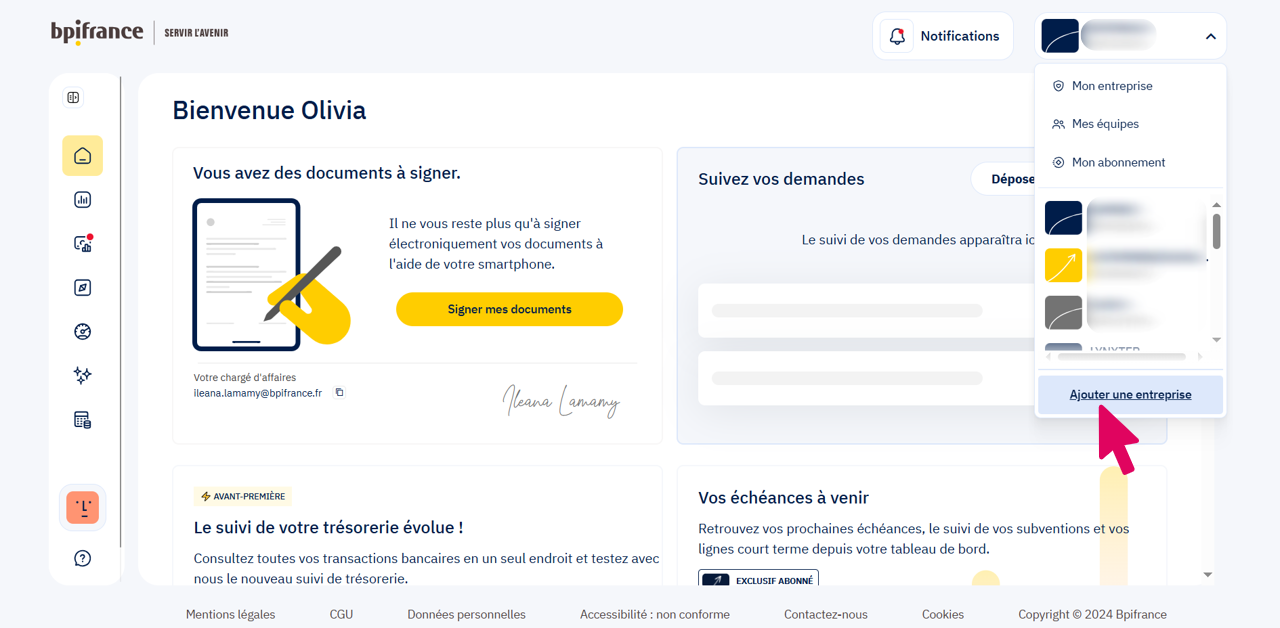 Après avoir préalablement sélectionné Ajouter une entreprise depuis votre espace client.