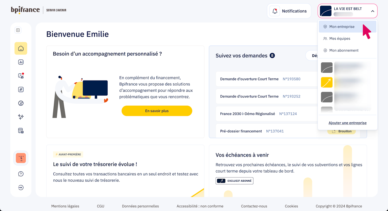 Vous pouvez également ajouter d’autres documents dans votre profil d’entreprise, qui seront alors pré-remplis dans vos futures demandes, vous permettant de gagner encore plus de temps ! En savoir plus.