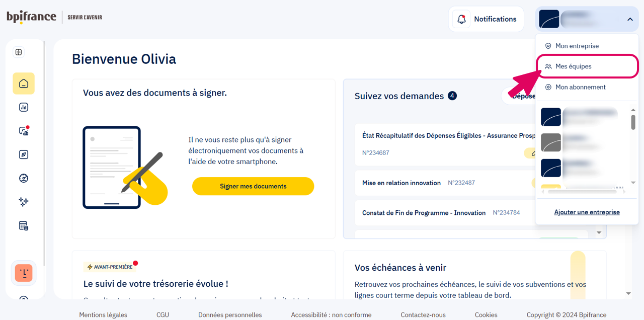 Cliquez sur votre entreprise, puis sur Mes équipes.