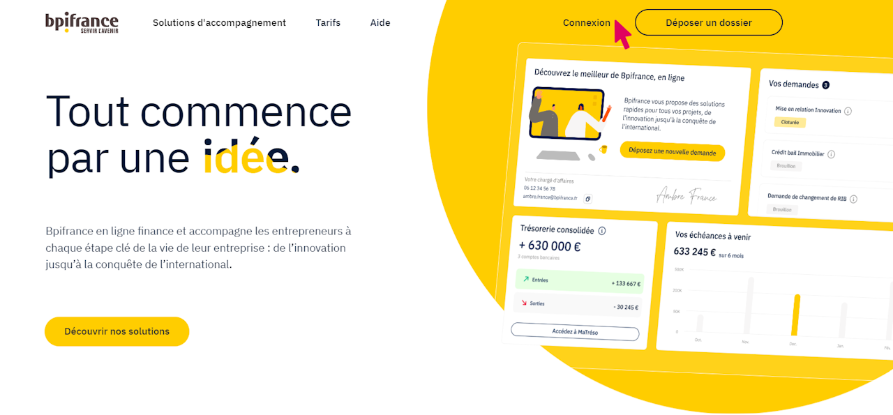 Afin de vous connecter ou créer votre espace client Bpifrance en ligne, veuillez vous rendre sur ce lien : Bpifrance en ligne Client