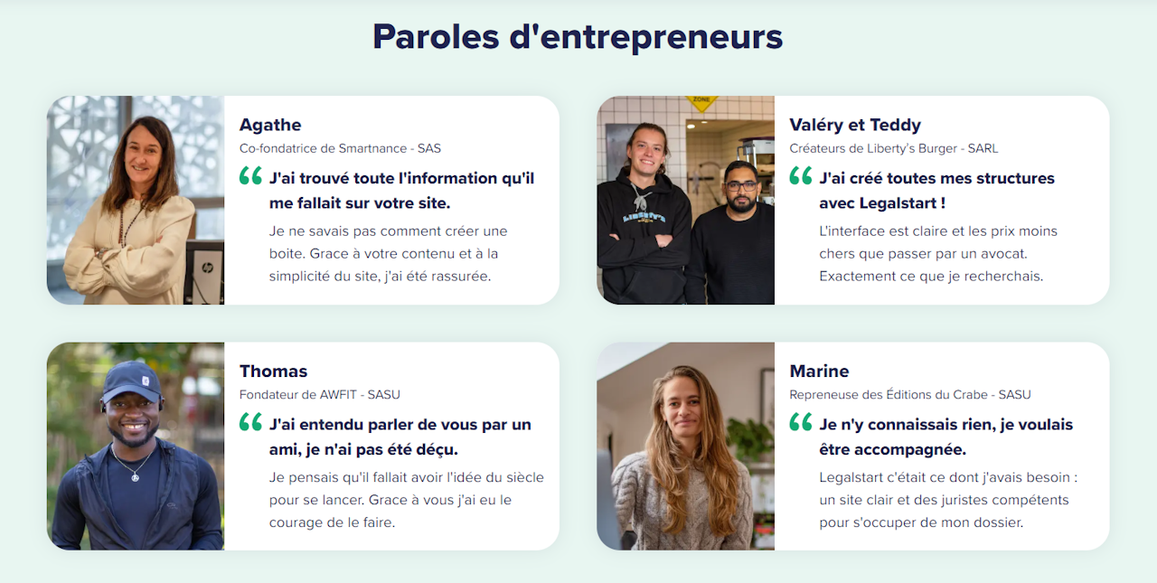 Voici quelques exemples concrets de l'accompagnement proposé par Legalstart :