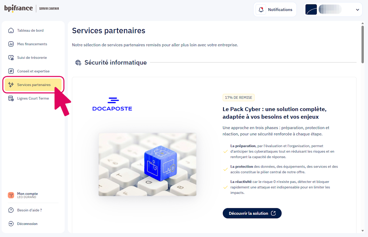 Vous bénéficiez de 10% de remises grâce à Bpifrance en ligne.
